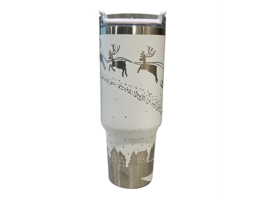 Santa and Reindeer Winter Scene Engraved on a 40 oz Tumbler